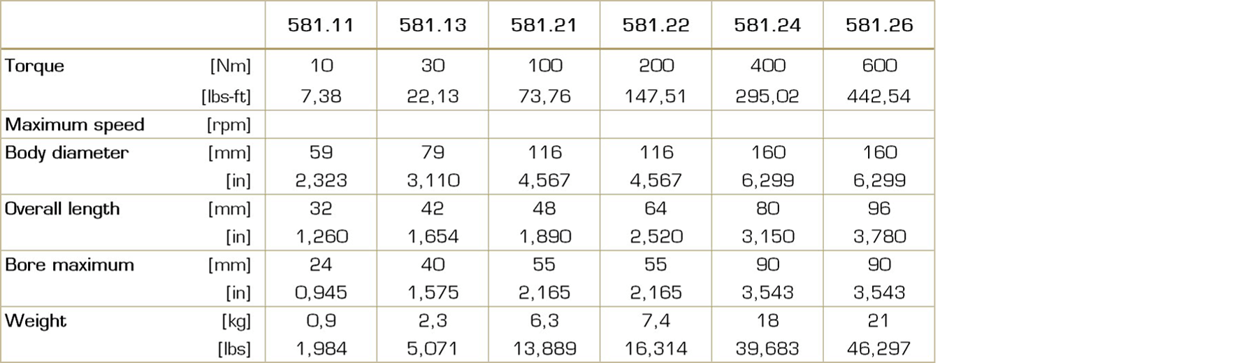 Type 581 - Multiple-disc torque limiter
